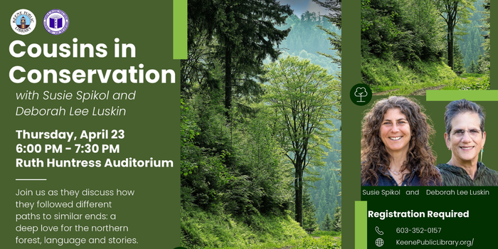 Join us as cousins Deborah Lee Luskin & Susie Spikol discuss how they followed different paths to similar ends: a deep love for the northern forest, language and stories.