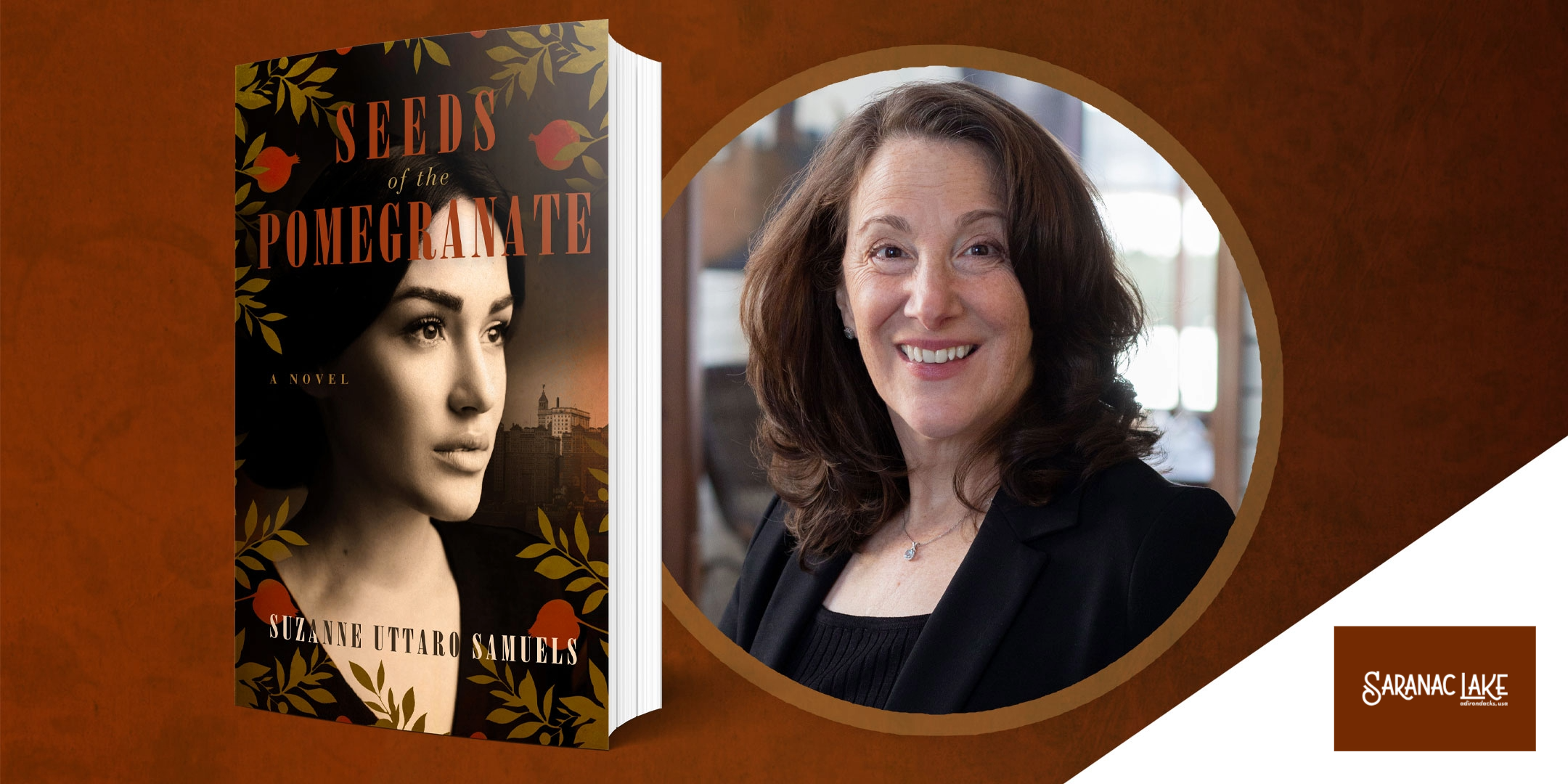 Join Suzanne Uttaro Samuels, author of new novel Seeds of the Pomegranate, will be in conversation with Amy Catania, Executive Director at Historic Saranac Lake about her new novel, writing, history, and more at Historic Saranac Lake on September 2nd, from 4pm-6pm.