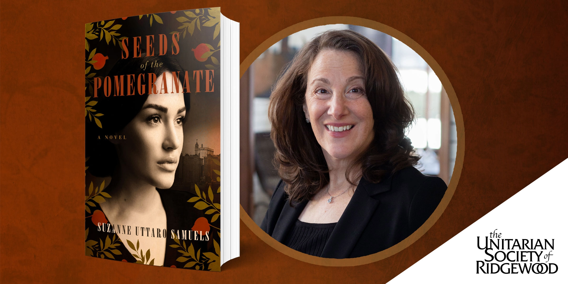 Join author Suzanne Uttaro Samuels, author of new historical fiction novel Seeds of the Pomegranate, in conversation with author Laura Spence-Ash (Beyond That, The Sea) at the Unitarian Society of Ridgewood in Ridgewood, NJ on September 14th, 2025 at 2pm.